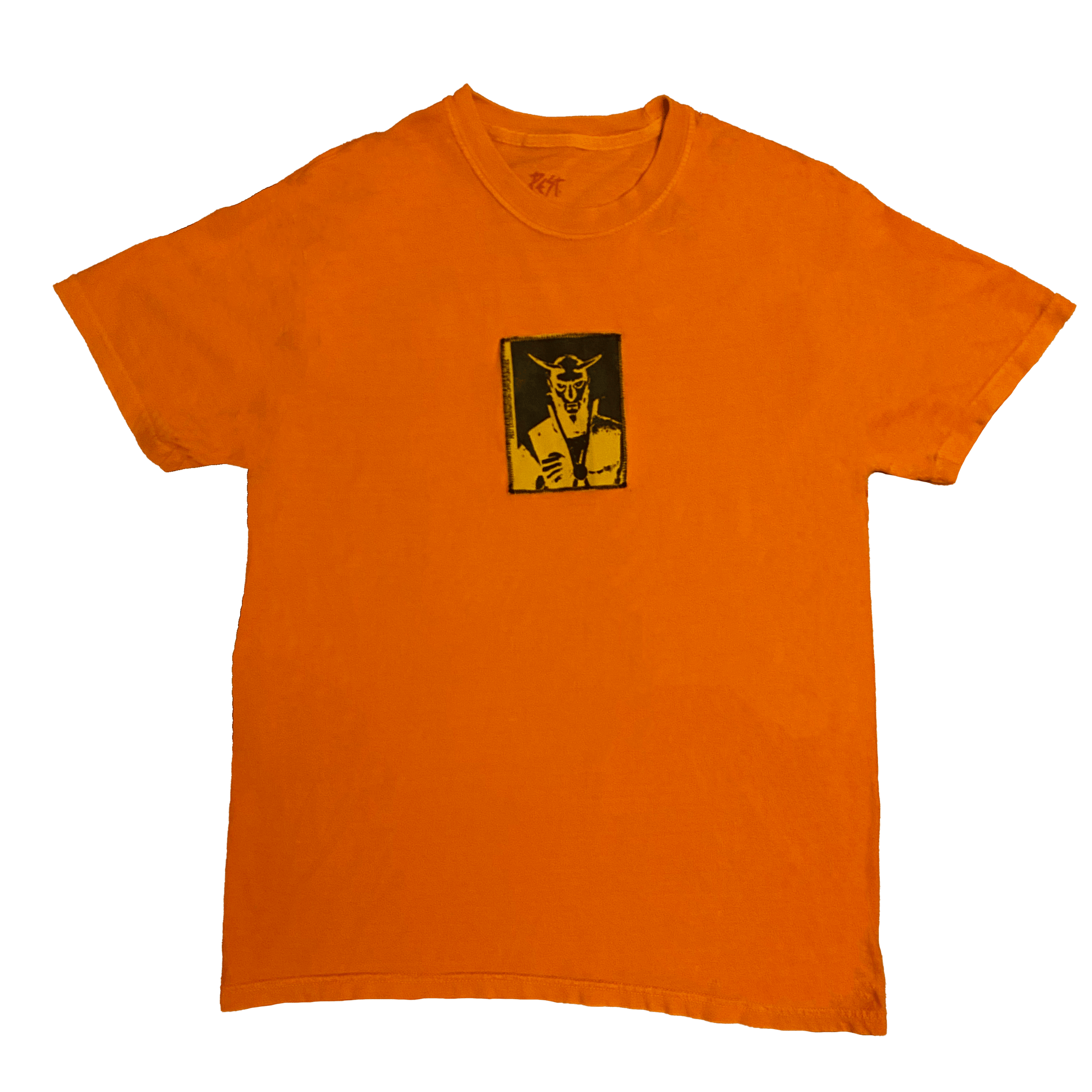 Hand-printed graphic on canvas patch, machine sewn onto 100% cotton shirt.