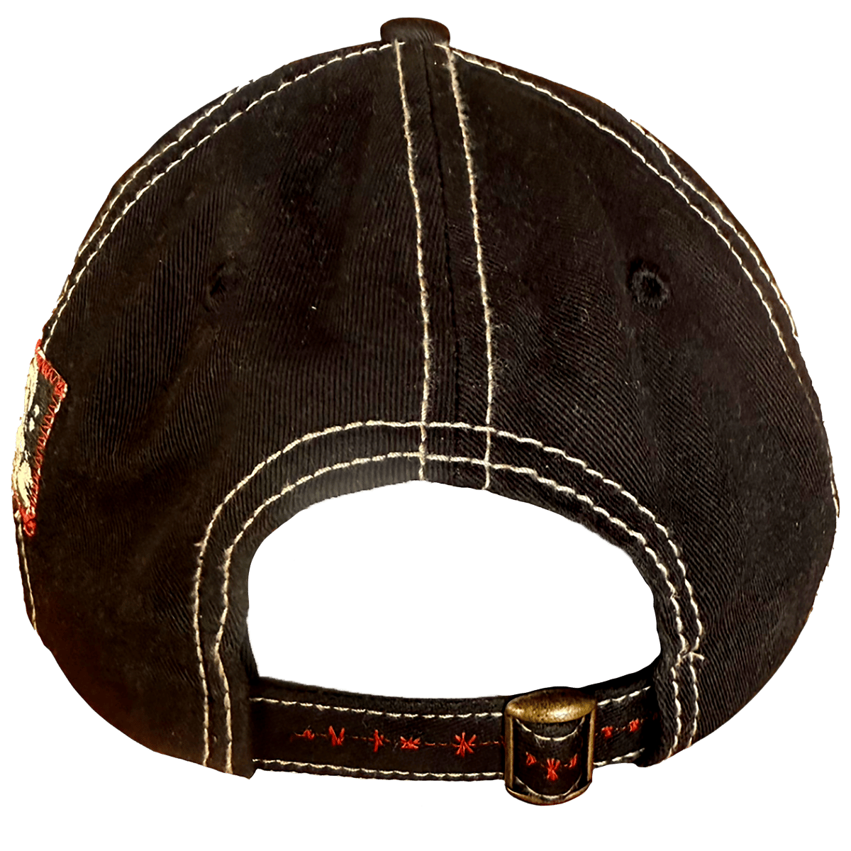 Custom patchwork throughtout, and embroidery on adjustment strap.